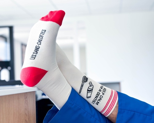 Toutes nos pièces sont fabriquées en France ou en Italie. Pour la confection des calots et des accessoires en tissu, nous travaillons avec des ateliers situés dans les Hauts-de-France, notre région d'origine. Nos tenues sont tissées et fabriquées en France. Sur ces pièces, nous travaillons avec des ateliers situés dans le Nord, en Normandie, et sur la côté d'Azur. Les chaussettes de contention sont fabriquées dans le nord de l'Italie, tandis que les chaussettes classiques sont confectionnées près de Limoges. Tous nos partenaires sont méticuleusement sélectionnés pour leur savoir-faire et leur technicité.