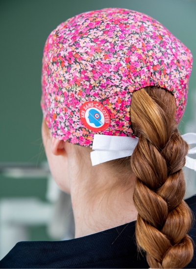 Le calot couvrant en tissu couvre l'ensemble de la chevelure, et descend davantage sur les oreilles. Il est recommandé pour les professionnels de santé qui travaillent au bloc et qui ne peuvent pas se permettre de laisser dépasser leurs cheveux. Il convient aussi bien aux hommes qu'aux femmes. Astuce : si vous avez les cheveux très longs, vous pouvez déplier le rebord, il est simplement plié au fer à repasser. Avec un chignon bas bien serré, tout est couvert !