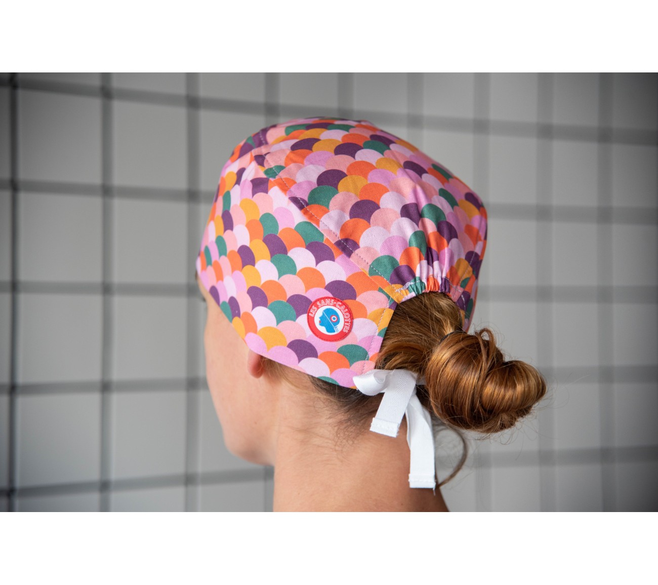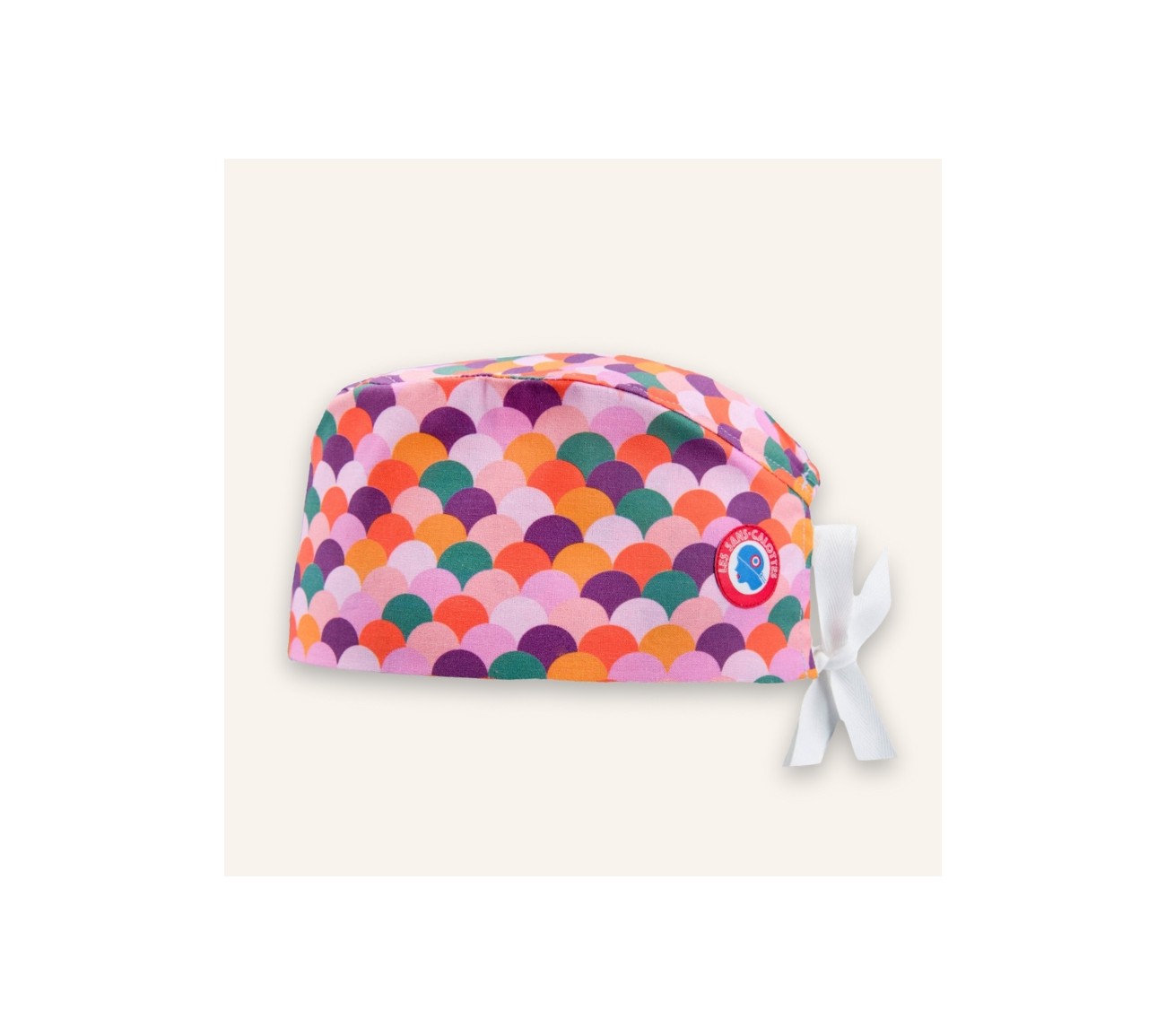 Calot en coton rose aux motifs d'écailles. Même Polochon sera jaloux de votre calot de bloc.