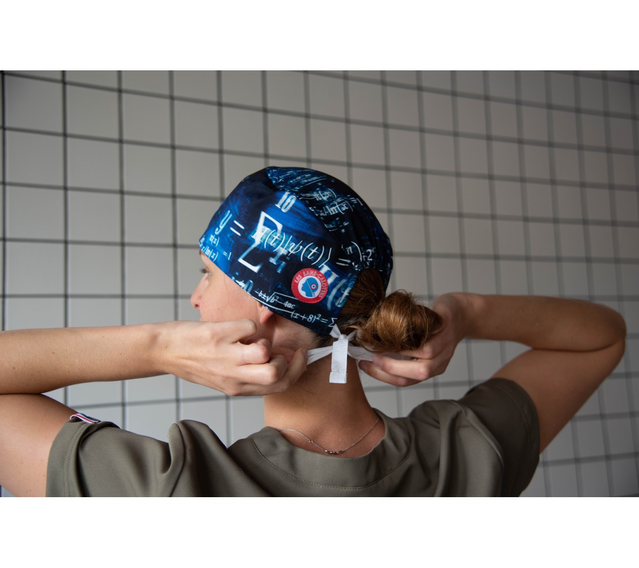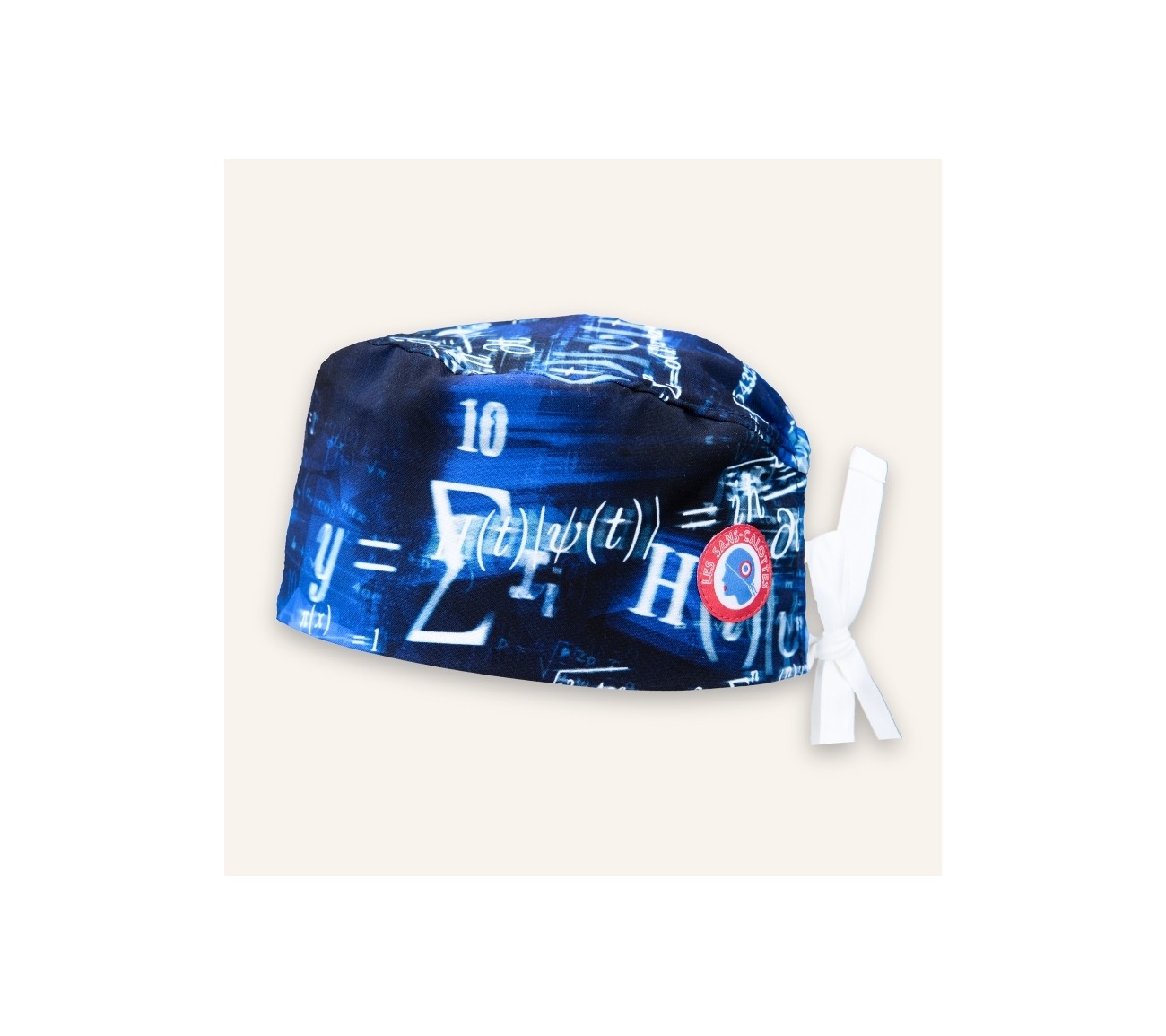 Calot en coton bleu aux motifs de formules mathématiques et physique