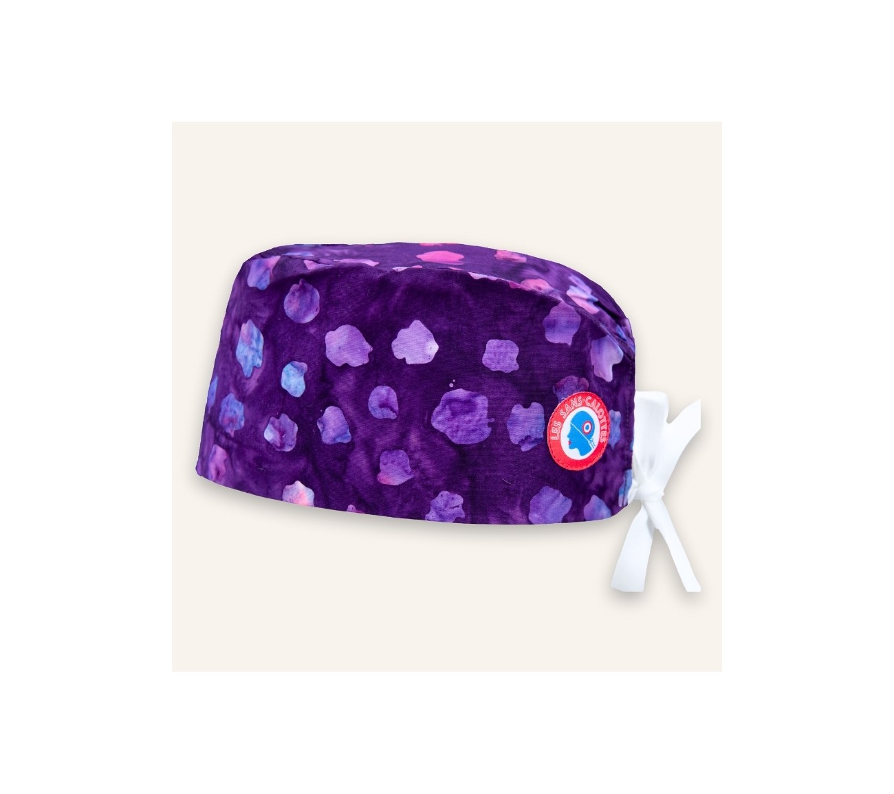 Calot en coton violet au grand motif léopard mauve