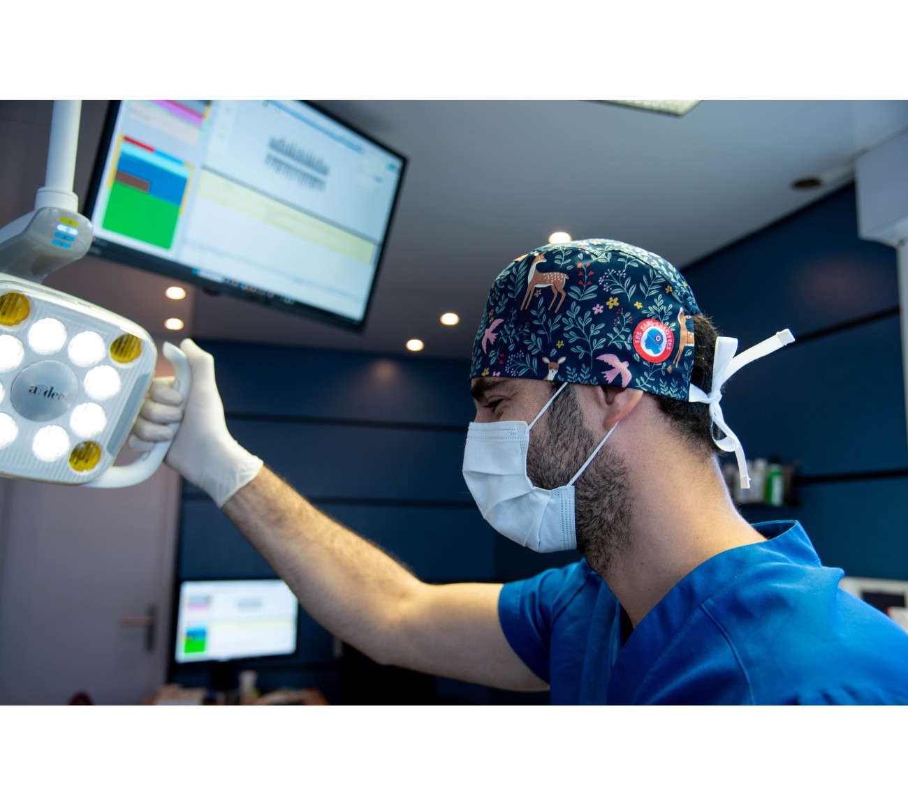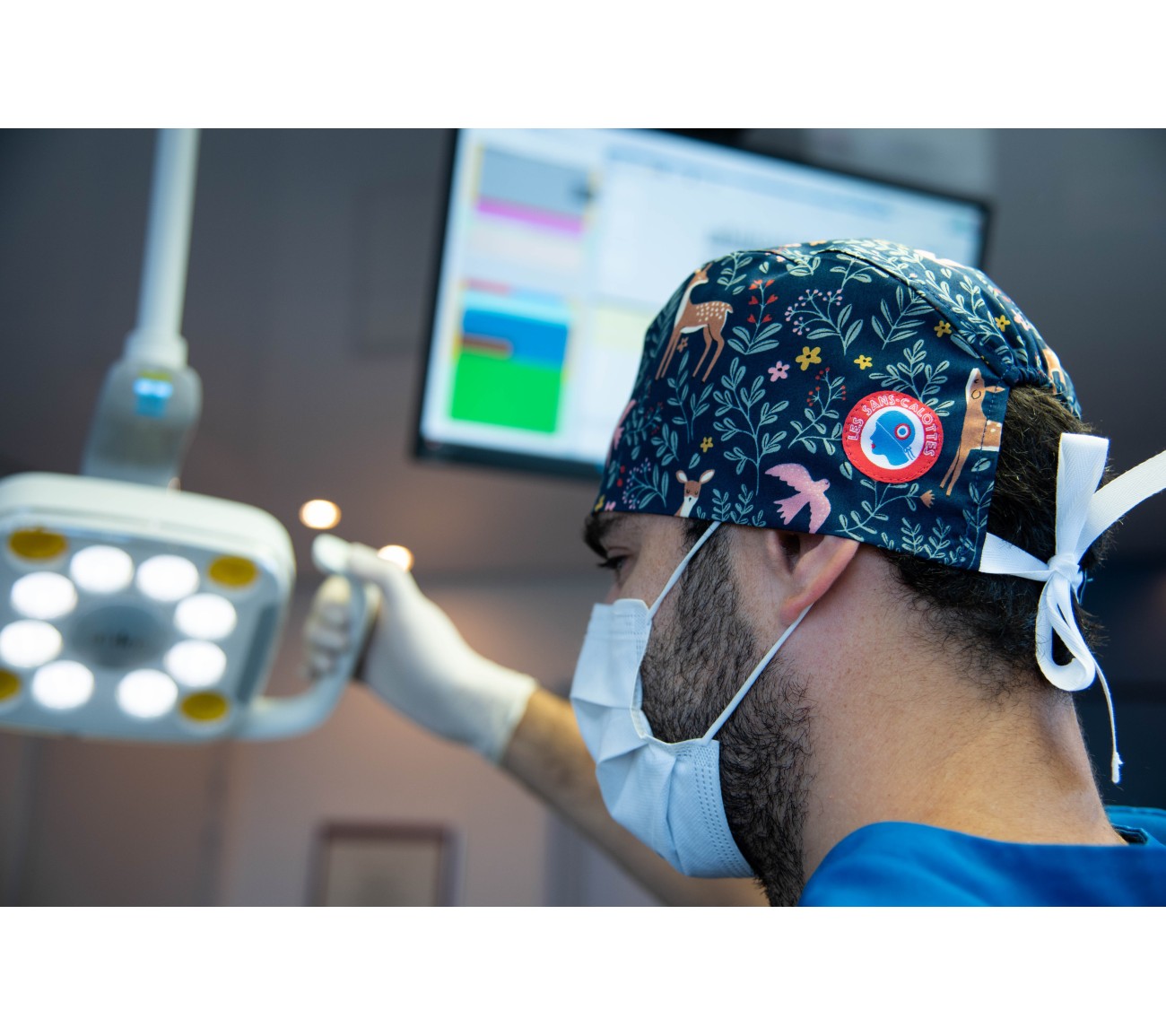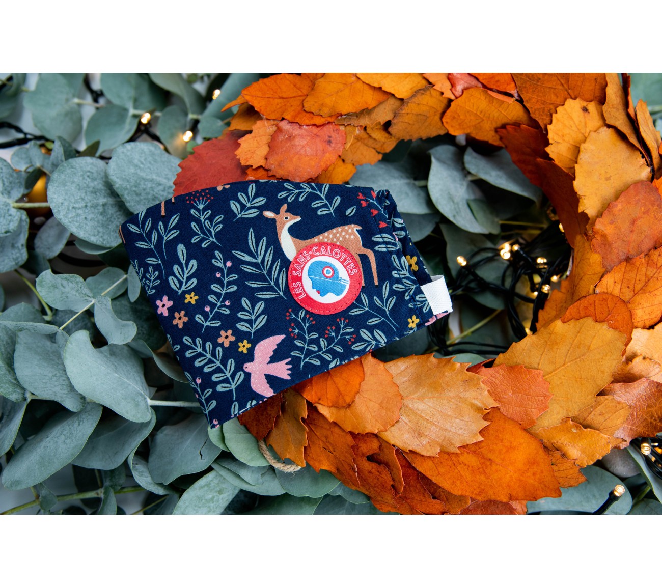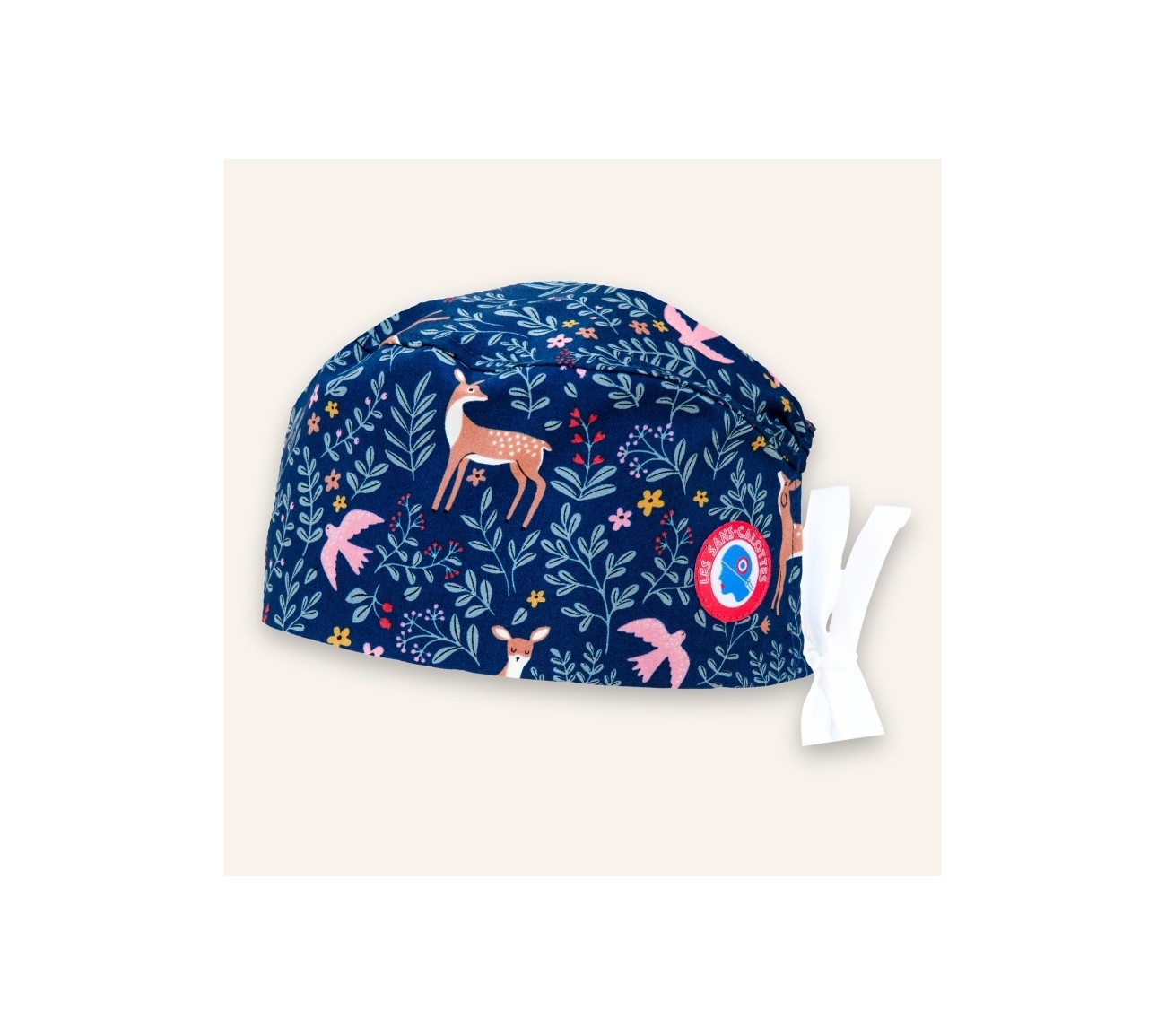 Calot en coton bleu marine aux motifs de biches et végétaux
