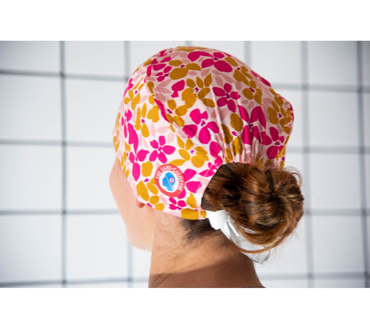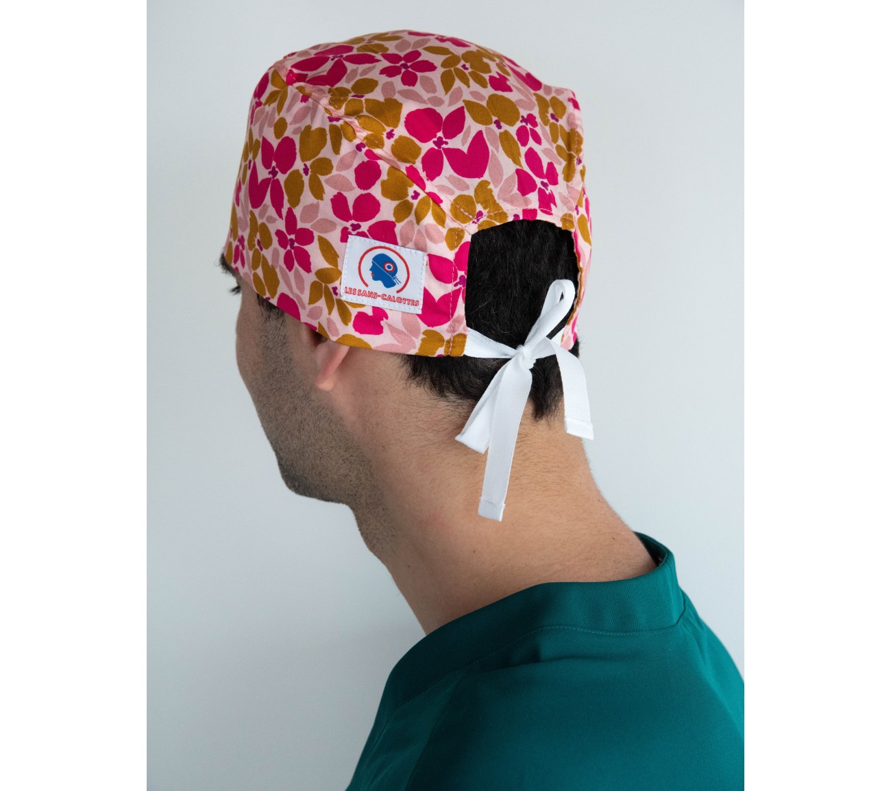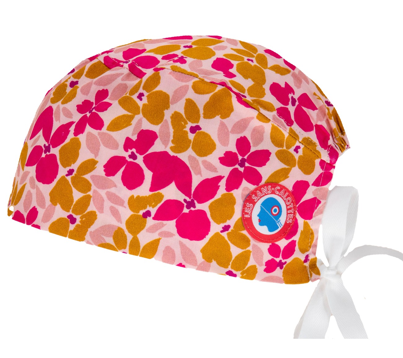 Calot en coton d'exception aux motifs fleuris roses et ocres