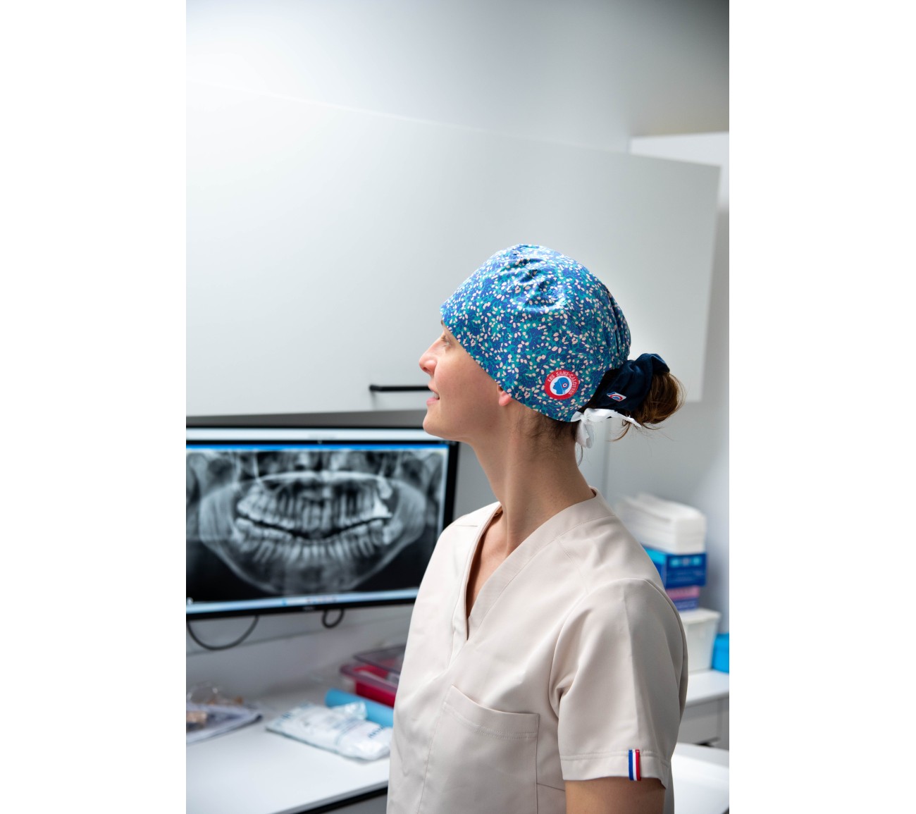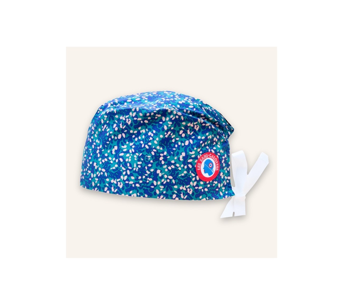 Calot en coton bleu fleuri