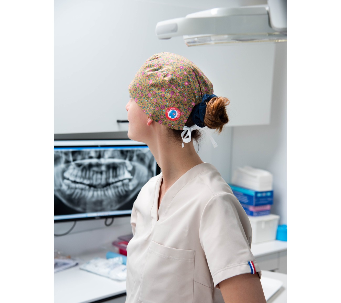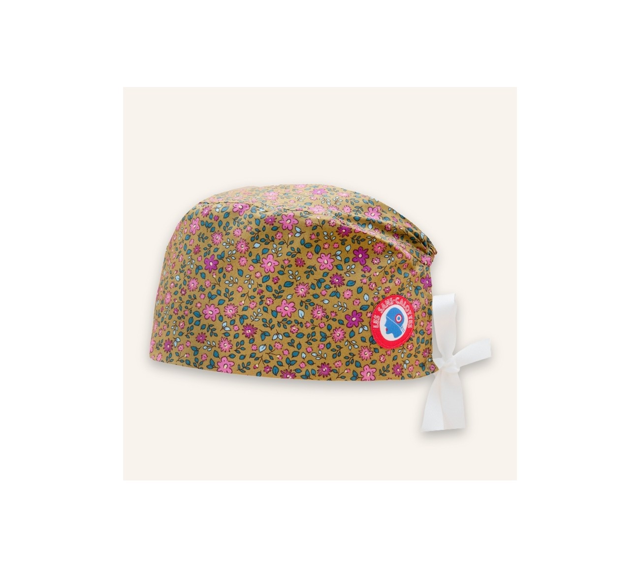 Calot en coton ocre fleuri