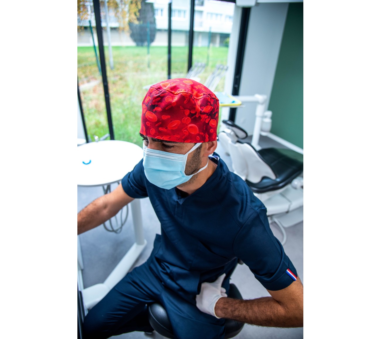 Calot de bloc en tissu motif medical