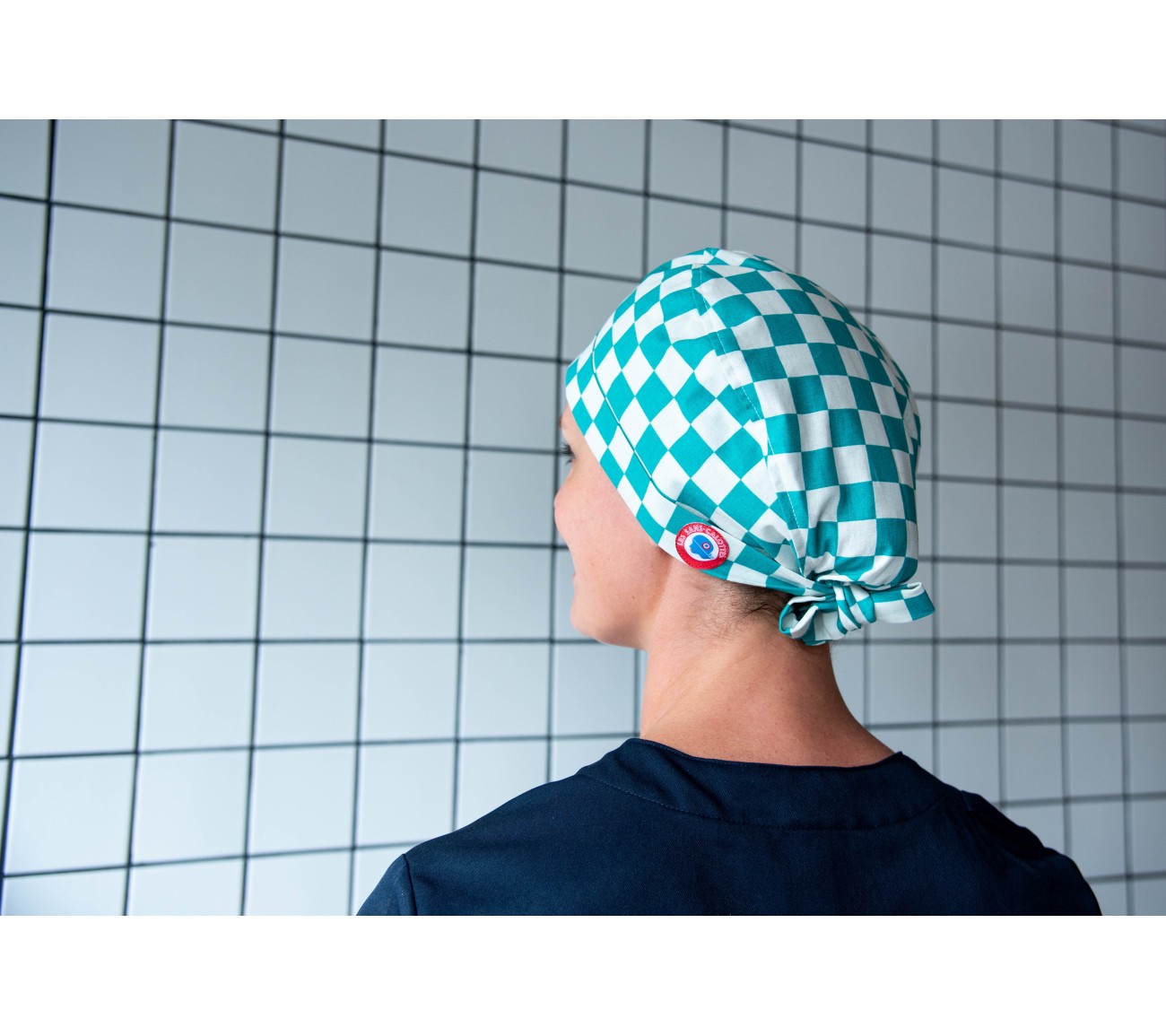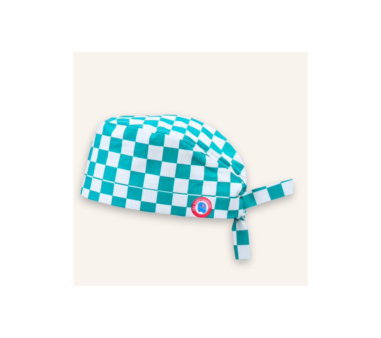 Calot en coton aux motifs de mosaïque, damier vert et blanc