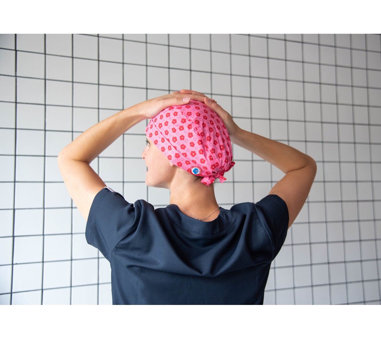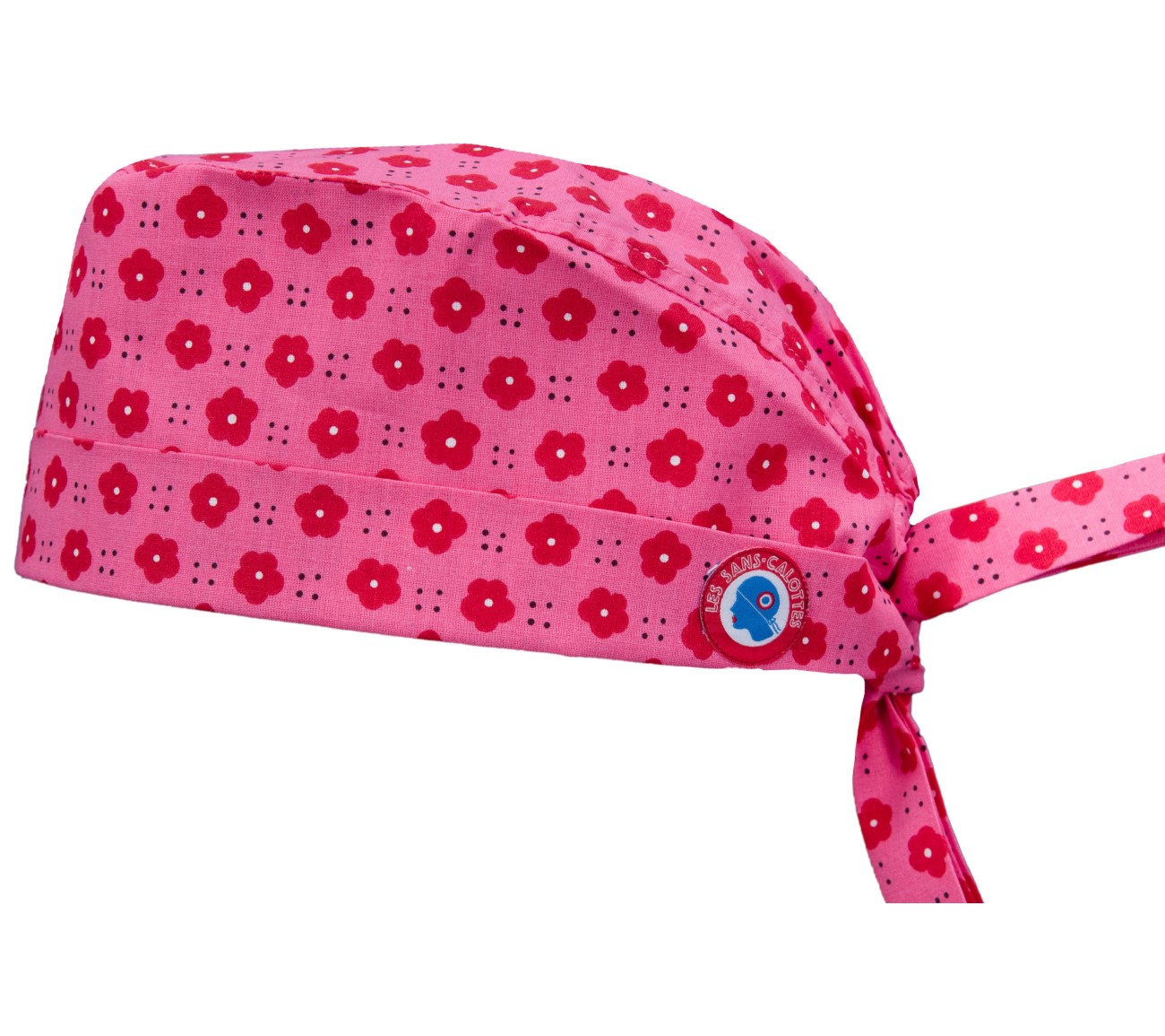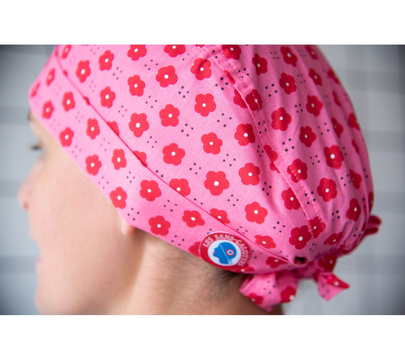 Calot de bloc en coton rose aux motifs de fleurs rouges