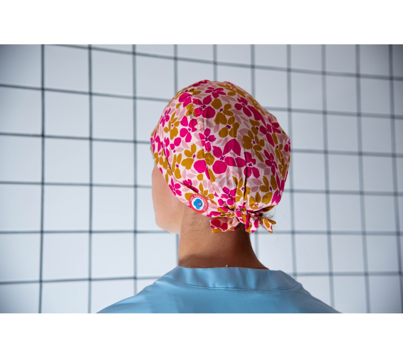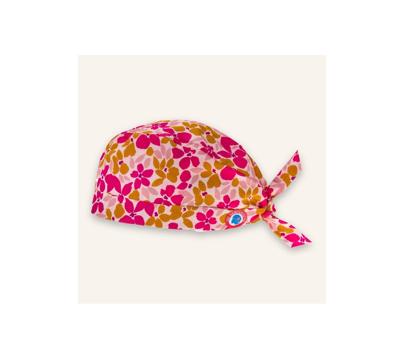 Calot fleuri en coton d'exception aux motifs roses et ocres