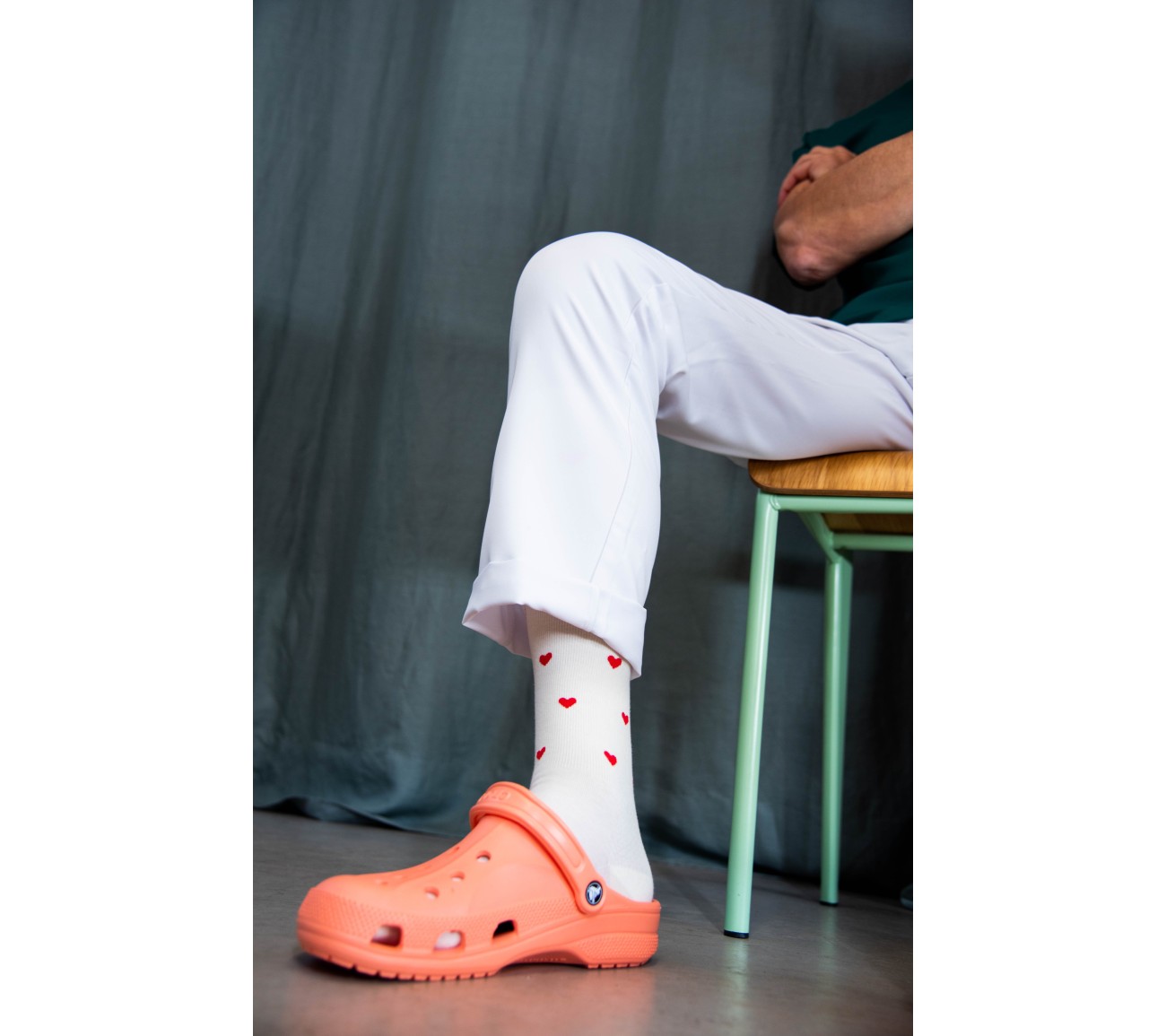 Chaussettes de compression classe II (15-20 mmHg) aux motifs coeurs, idéales pour le travail, le temps libre ou la grossesse.
