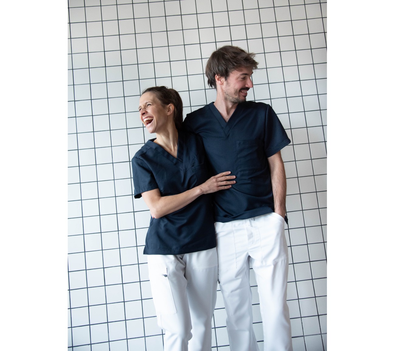 Ce tissu intachable a aussi l'avantage d'être très léger et a été étudié pour être extrêmement respirant. Il est donc tout à fait adapté aux professions médicales comme les pharmaciens, les biologistes, et autres professionnels de laboratoire. Il est également fort apprécié des professions paramédicales comme les kinésithérapeutes, ostéopathes, pédicures-podologues, ambulanciers, manipulateurs radio et tous les autres professionnels de santé.