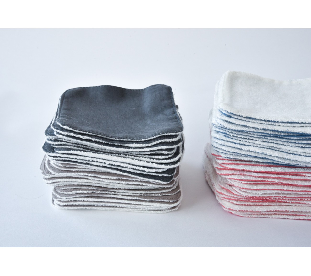 - Lot de 10 lingettes lavables unies de couleur aléatoire (Panachage selon les stocks !)