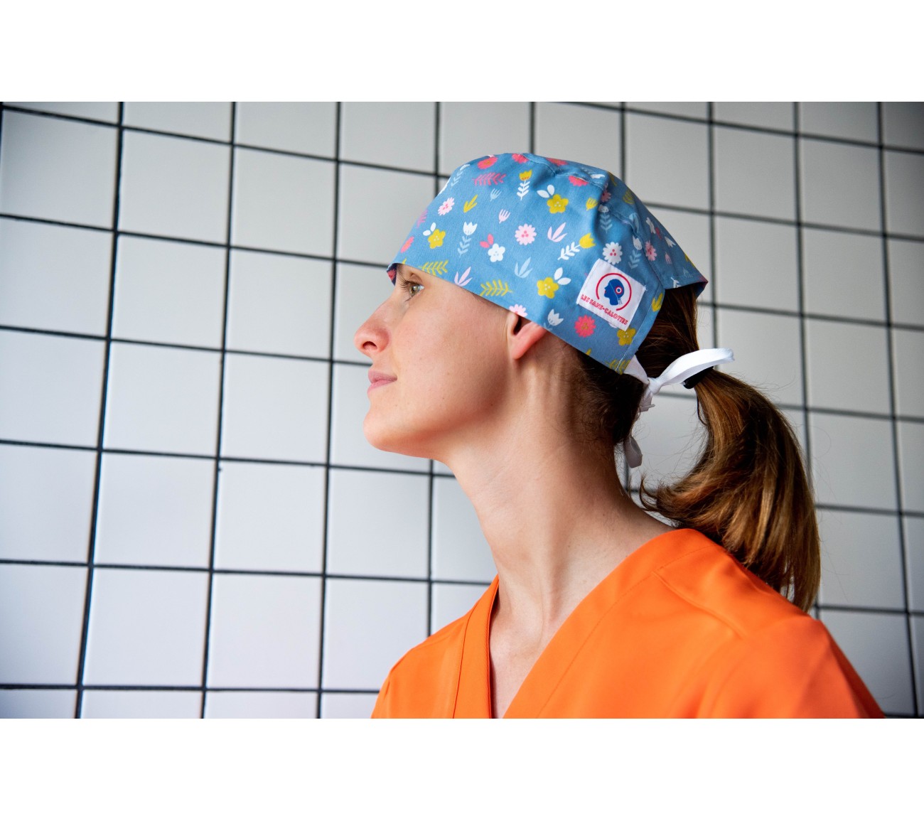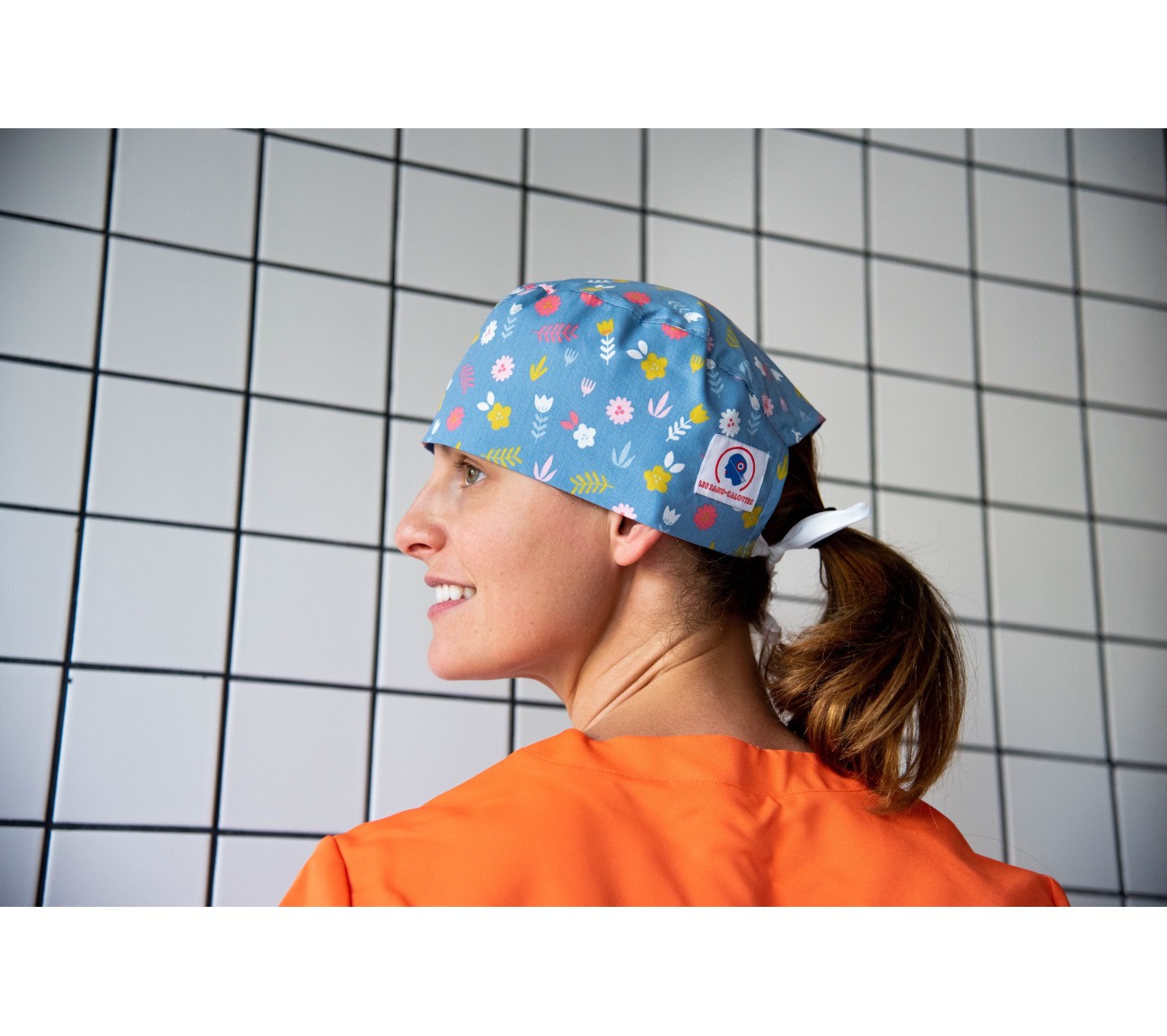 Calot en coton bleu aux motifs de fleurs