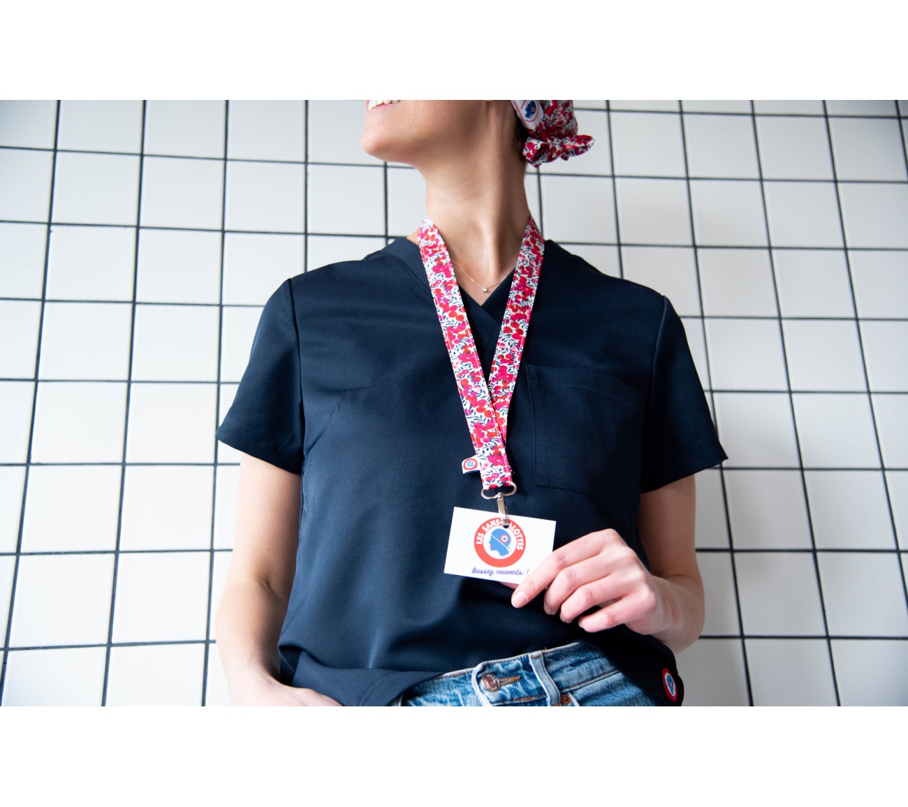Tour de cou en tissu Liberty pour porter votre badge et vos clés, muni d'un mousqueton solide